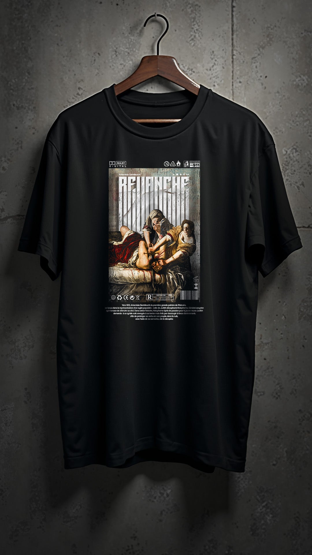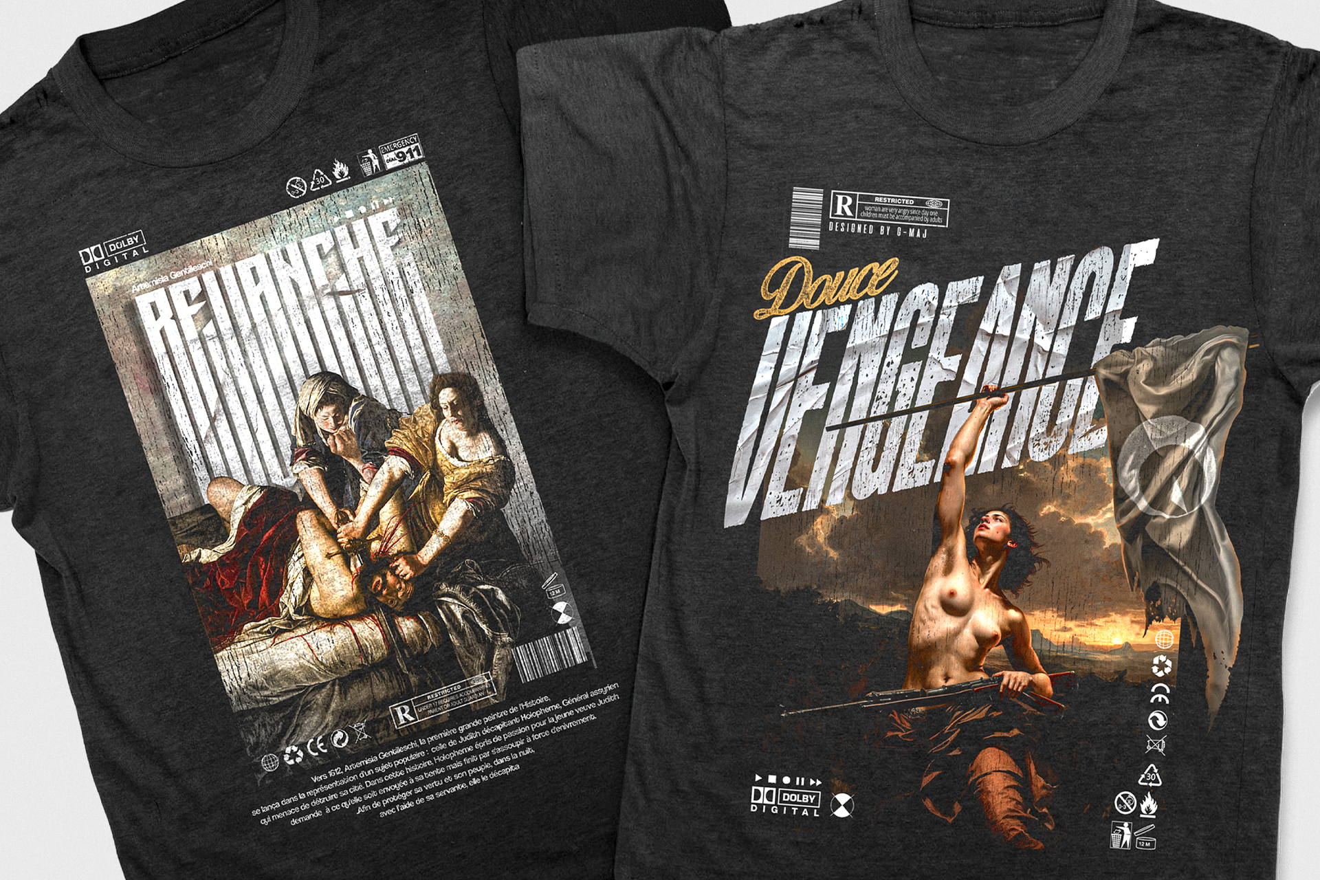 Dans l'esprit de la collection REVANCHE : un style Vintage avec des manières de tableaux "Delacroix" a la sauce moderne. Couplé avec des sigles et typographies façon covers américaines.