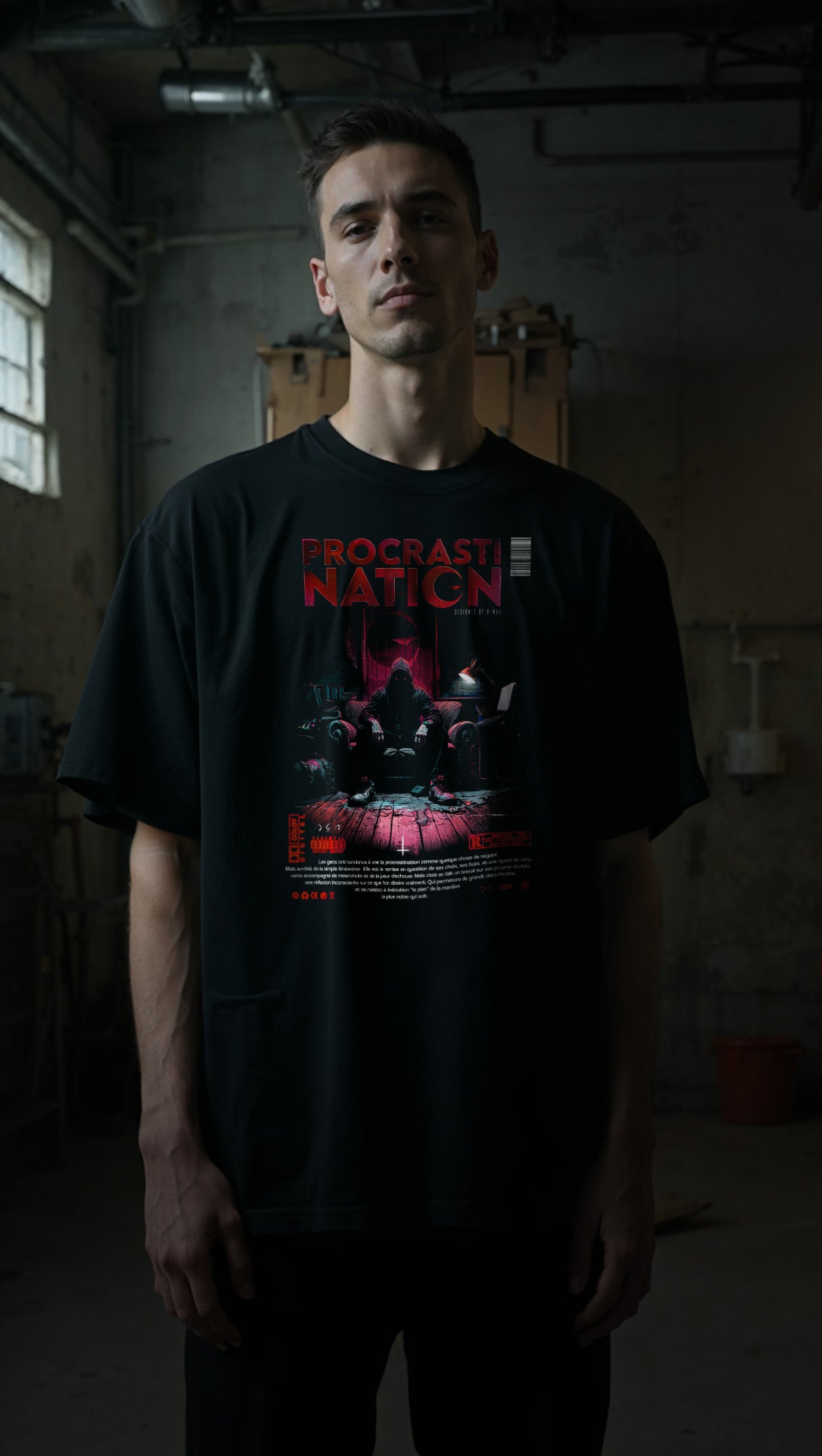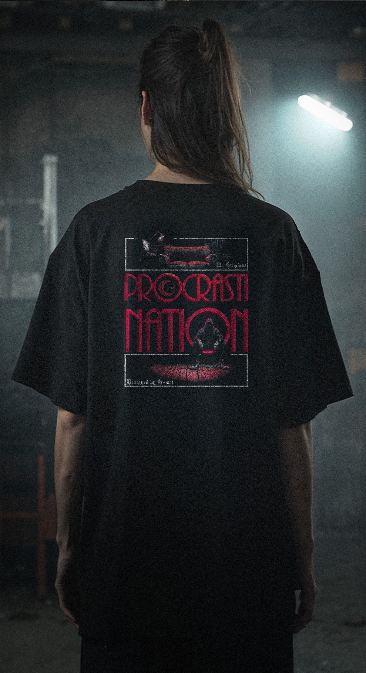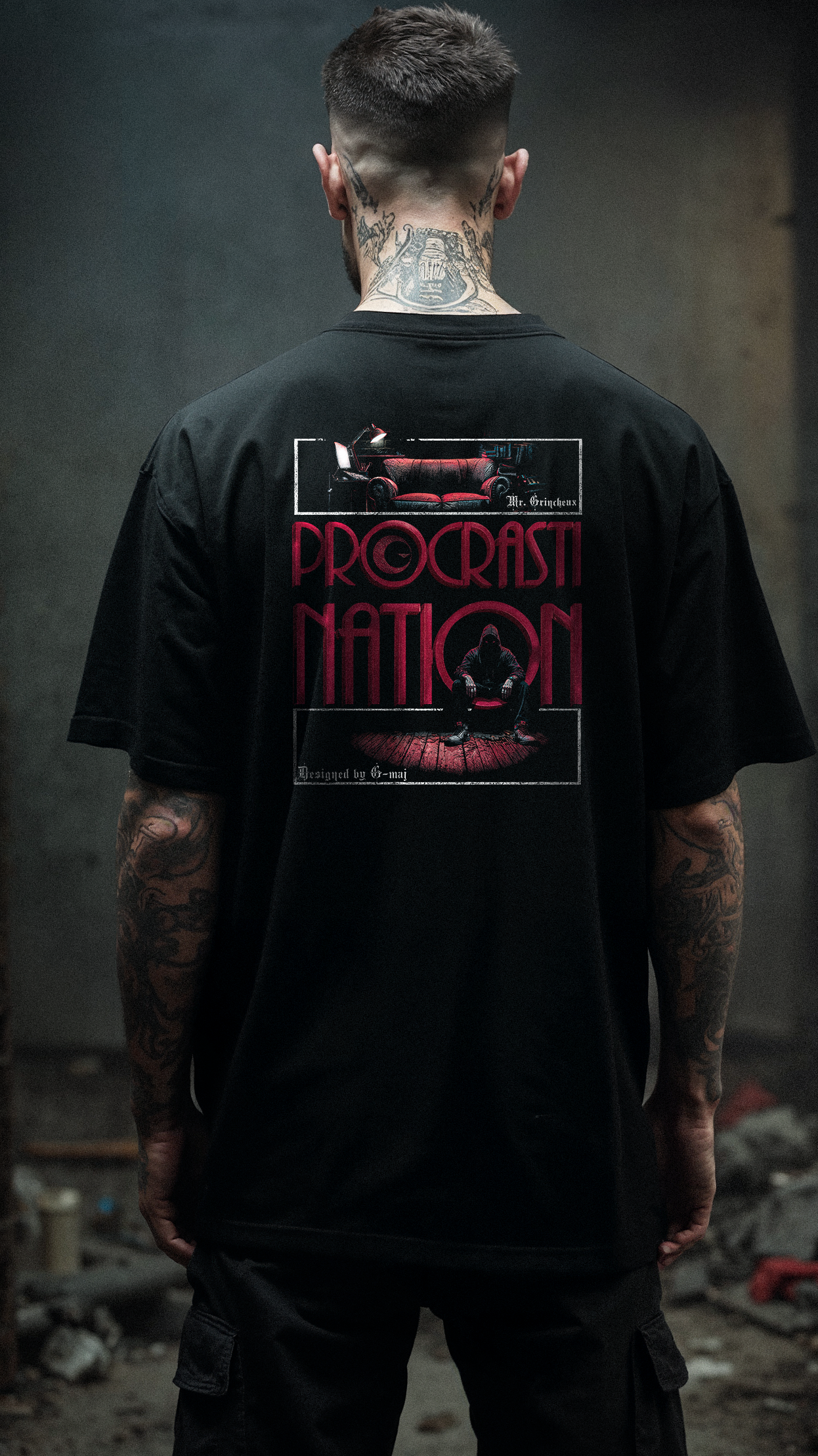 Conseil de Mr. G : le T shirt PROCRASTINATION taille petit, Pour un effet oversize fat comme sur les photos, prendre une à deux taille au dessus.